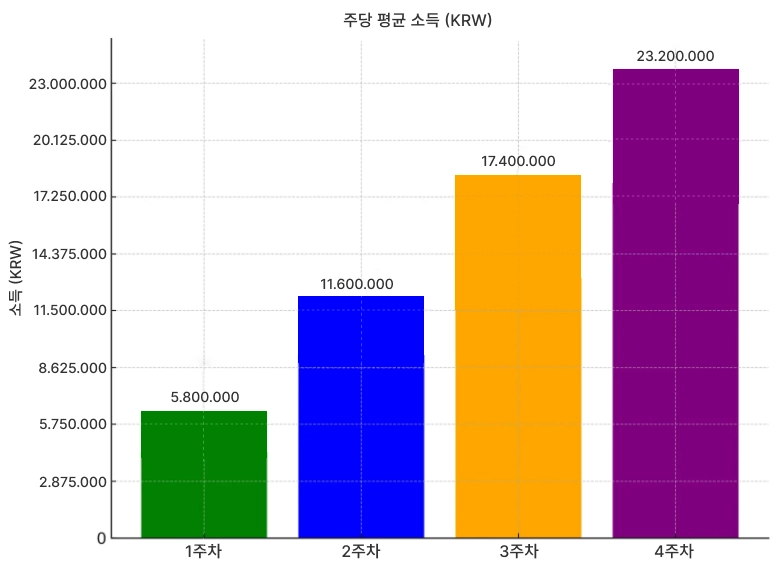 인공지능 알고리즘이 시장을 분석하고 이익을 창출합니다. 현재 사용자들은 매주 4,350,000 원에서 5,800,000 원 사이의 수익을 꾸준히 얻고 있으며, 이는 실제 숫자입니다.